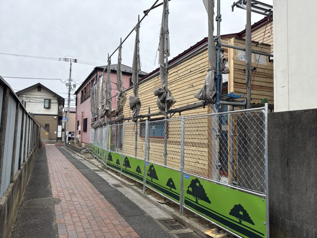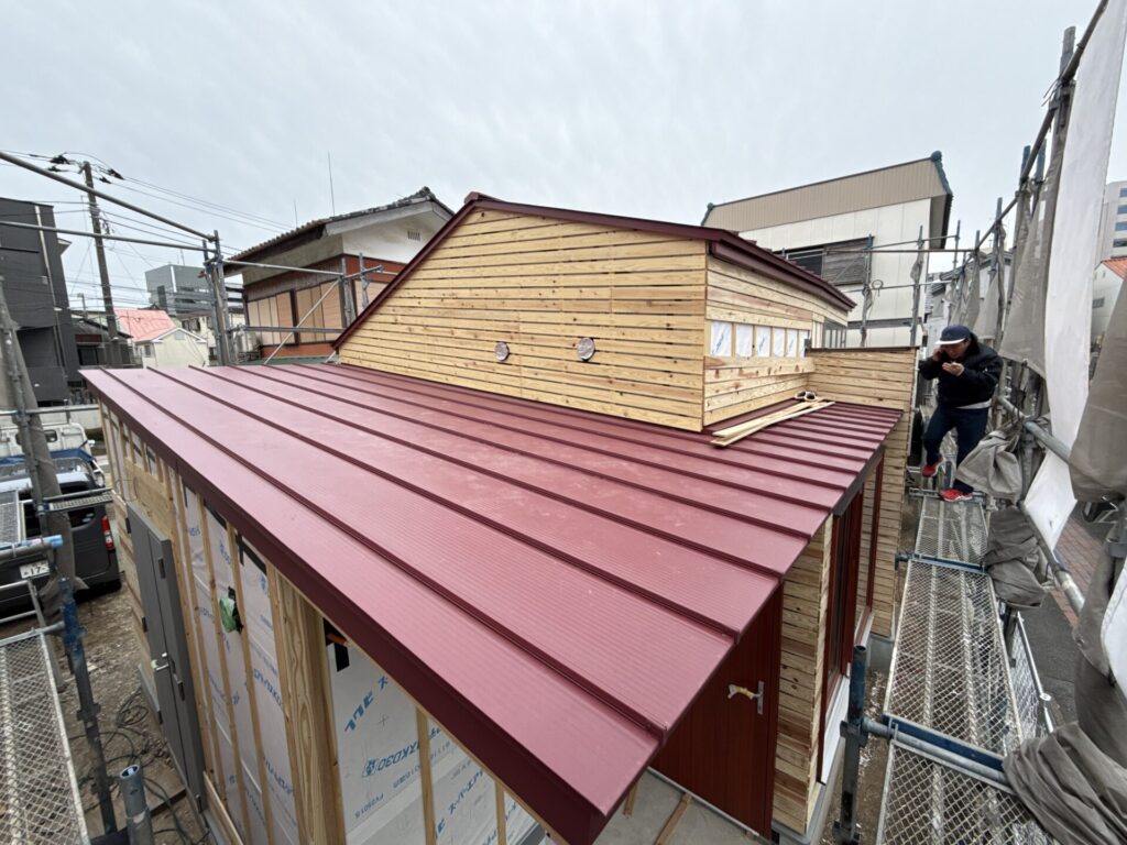 船橋市の中心街から少し歩いた寺町エリアで木造平屋建ての飲食店を設計監理している。裏通りだが地元の人たちが何ができるのかと興味深そうに見ながら通り過ぎていく。今は電気配線や下地がほぼできあがり、内外ともに仕上に入るところだ。